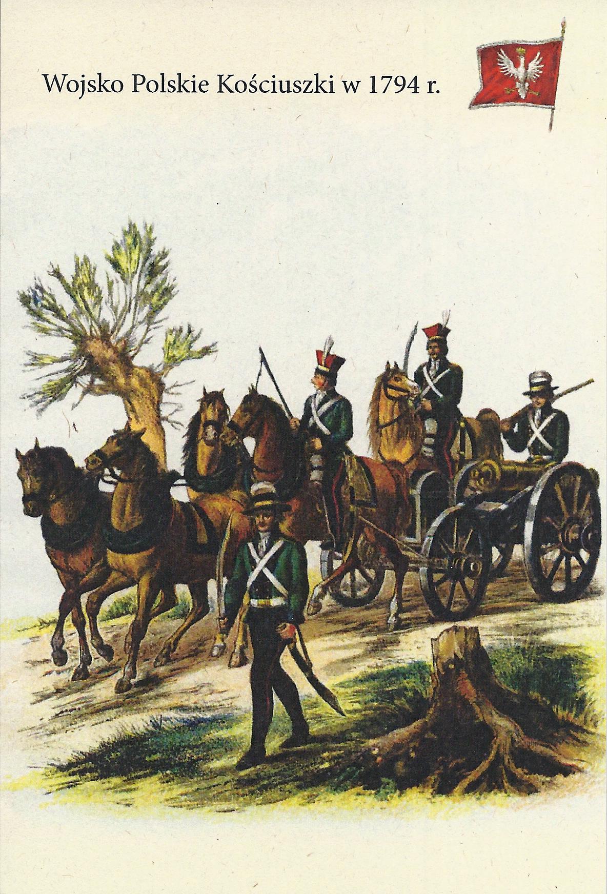 Pocztówka Artyleria wojska regularnego podczas powstania Kościuszki rys. Walery Eliasz format: 10x15 cm