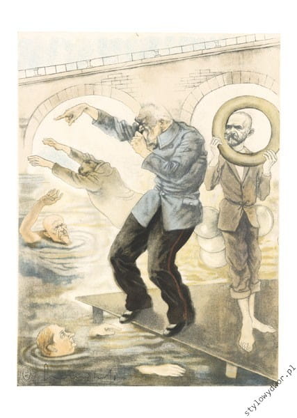 Prezentujemy reprint jednej z 13 grafik Zdzisława Czermańskiego przedstawiający Marszałka Józefa Piłsudskiego; wydruk wykonany na bardzo dobrej jakości sztywnym papierze o wymiarze 45x32cm Czermański rysunku uczył się we Lwowie u Kazimierza Sichulskiego. Jako nastolatek wstąpił do Legionów, w latach 20. współpracował z czasopismami satyrycznymi: Cyrulikiem Warszawskim i lwowskim Szczutkiem. W 1930 r. miał zorganizowaną wystawę indywidualną w Galerii Charpentier. Z Francji wyjechał do Anglii, gdzie rysował dla pisma Graphic. W 1931 r. wyjechał do USA na zaproszenie nowo powstałego Fortune Magazine, dla którego przez 3 lata rysował. Zaprezentowany rysunek wraz z 12 innymi karykaturami sam Piłsudski polecił rozwiesić w Belwederze. Całość wydano w 1931 r. w ilości 500 numerowanych egzemplarzy.