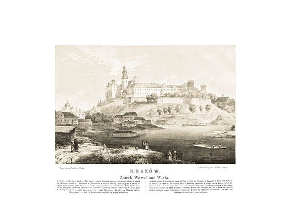 Kraków Zamek Wawel nad Wisłą - Napoleon Orda - litografia