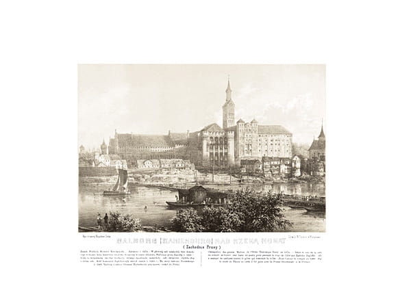 Mamy przyjemność zaprezentować Państwu reprint jednej z 260 plansz z 'Albumu widoków historycznych Polski' autorstwa Napoleona Ordy, wydanego w latach 1873-1883, 'przedstawiający miejsca historyczne od początku chrześcijaństwa w Polsce, ruiny zamków obronnych z czasów wojen tureckich, tatarskich, krzyżackich, kozackich i szwedzkich - piękne rezydencye, świadczące o przeszłości i cywilizacyi w tym kraju oraz miejsca urodzenia ludzi wsławionych orężem, piórem lub nauką'. Plansza przygotowana została z zachowaniem metody druku z epoki, poprzez druk na specjalnie przygotowanym papierze w zgodnym z oryginałem wymiarze, w dwóch kolorach, z odpowiednio dobranych farb, przygotowanych na podstawie oryginalnych litografii, wykonanych na kamieniu przez Alojzego Misyrowicza w Zakładzie Maxymiliana Fajansa. - Metoda druku: Fotooffset - Papier: Munken Pure w kolorze ecree 240g/m2 - Rozm. planszy 45 x 31,5 cm - Rozm. rysunku 29,8 x 19,7 cm