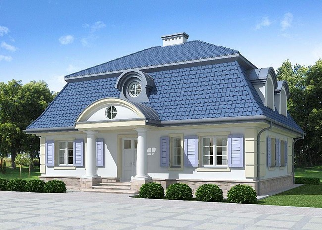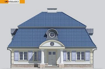 Na szczęście mogę w tej recenzji przedstawić również obrazy omawianego projektu. Już na pierwszy rzut oka widać, że dwór z Żyrzyna niewątpliwie zainspirował twórcę projektu LK&617. Mansardowy, wysoki dach z barokową lukarną, kolumny ganku zwieńczone podobnym, łukowym frontonem i symetryczne okna z okiennicami oddają bardzo wiele z ducha pierwowzoru. Ten przeznaczony dla czteroosobowej rodziny budynek dzielący z dworem w Żyrzynie zaledwie tych kilka elementów elewacji frontowej, dzieli tak naprawdę coś więcej. To zachwyt nad naszą narodową architekturą!