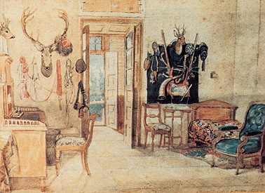 4 – J. Kossak, Wnętrze salonu myśliwskiego w Siąszycach