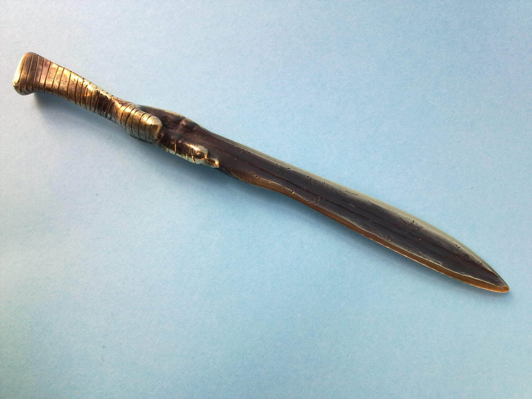 Prezentujemy nóż do listów i papieru z mosiądzu wykonany metodą odlewniczą, patynowany i przebłyszczony wymiary: Długość: 23,5cm. Waga: 160g.