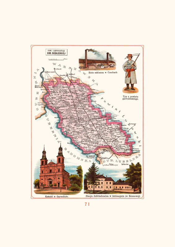 Reprint mapy z "Atlasu geograficznego Królestwa Polskiego" pod redakcją J.M. Bazewicza. Reprint oryginału z 1907 r.