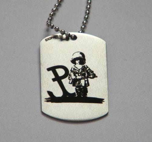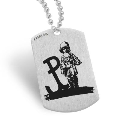 Nieśmiertelnik z jednostronnym grawerem wykonany z tytanu! Wymiar 30x50mm; łańcuszek kulkowy o długości 60cm. Sygnowany znakiem EXOFIN oraz próbą tytanu.
