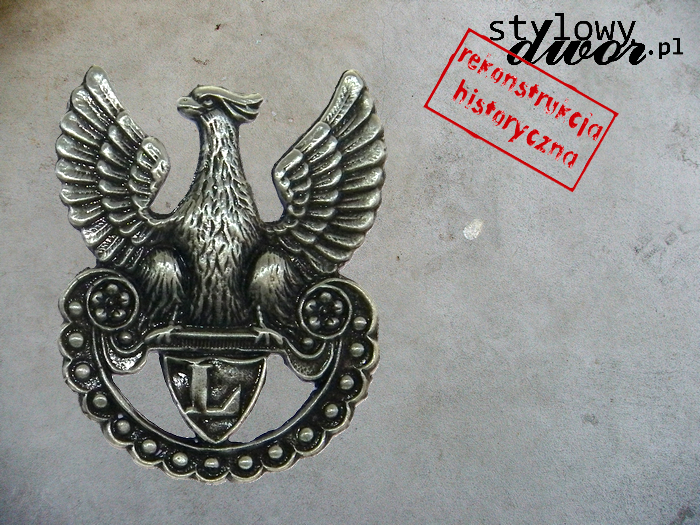 Prezentujemy Państwu piękną, metalową replikę orła legionowego z ażurową tarczą amazonek. Orzeł ten noszony był jako odznaka patriotyczna. Wymiary repliki: szer 28mm x wys 37mm. Odlew w metalu oksydowany na stare srebro. Sposób mocowania - motylek.