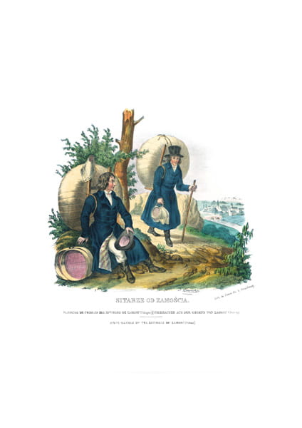 Reprint grafiki z książki "Stroje Ludowe Narodu Polskiego z wiernym opisaniem jego obyczajów, zwyczajów, i sposobu bycia" Leona Zienkowicza.