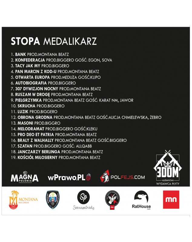 Następna, druga już płyta częstochowskiego rapera-patrioty. Stopa, oskarżony i ścigany za nagłaśnianie niewygodnych prawd historycznych, nie przerywa natarcia. Medalikarz to 19 utworów nagranych na przekór przesiąkniętemu fałszem klimatowi Polski ostatnich lat.