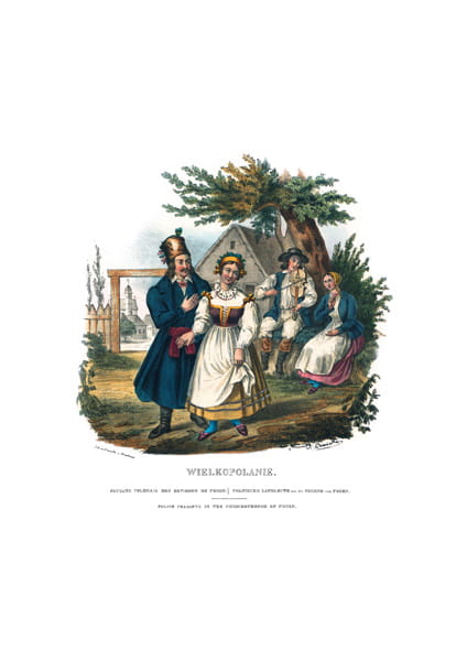 Reprint grafiki z książki "Stroje Ludowe Narodu Polskiego z wiernym opisaniem jego obyczajów, zwyczajów, i sposobu bycia" Leona Zienkowicza.