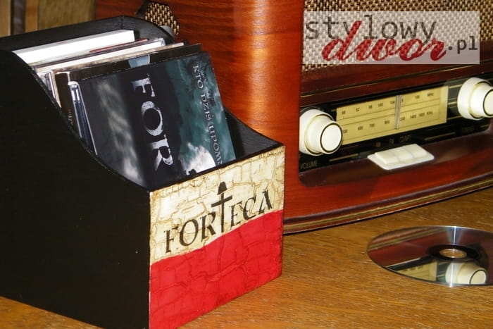 Prezentujemy państwu unikatowe, ręcznie zdobione pudełko na płyty CD z logo zespołu FORTECA. Wymiary zewnętrzne pudełka: 14 x 14 cm. Wysokość: przód: 9,2 cm, tył: 15,7 cm. Ręczne zdobienie nadaje każdemu egzemplarzowi niepowtarzalny charakter!