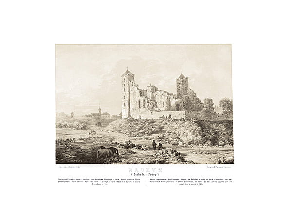 Mamy przyjemność zaprezentować Państwu reprint jednej z 260 plansz z 'Albumu widoków historycznych Polski' autorstwa Napoleona Ordy, wydanego w latach 1873-1883, 'przedstawiający miejsca historyczne od początku chrześcijaństwa w Polsce, ruiny zamków obronnych z czasów wojen tureckich, tatarskich, krzyżackich, kozackich i szwedzkich - piękne rezydencye, świadczące o przeszłości i cywilizacyi w tym kraju oraz miejsca urodzenia ludzi wsławionych orężem, piórem lub nauką'. Plansza przygotowana została z zachowaniem metody druku z epoki, poprzez druk na specjalnie przygotowanym papierze w zgodnym z oryginałem wymiarze, w dwóch kolorach, z odpowiednio dobranych farb, przygotowanych na podstawie oryginalnych litografii, wykonanych na kamieniu przez Alojzego Misyrowicza w Zakładzie Maxymiliana Fajansa. - Metoda druku: Fotooffset - Papier: Munken Pure w kolorze ecree 240g/m2 - Rozm. planszy 45 x 31,5 cm - Rozm. rysunku 29,8 x 19,7 cm