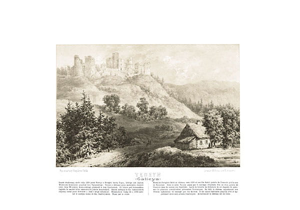 Mamy przyjemność zaprezentować Państwu reprint jednej z 260 plansz z 'Albumu widoków historycznych Polski' autorstwa Napoleona Ordy, wydanego w latach 1873-1883, 'przedstawiający miejsca historyczne od początku chrześcijaństwa w Polsce, ruiny zamków obronnych z czasów wojen tureckich, tatarskich, krzyżackich, kozackich i szwedzkich - piękne rezydencye, świadczące o przeszłości i cywilizacyi w tym kraju oraz miejsca urodzenia ludzi wsławionych orężem, piórem lub nauką'. Plansza przygotowana została z zachowaniem metody druku z epoki, poprzez druk na specjalnie przygotowanym papierze w zgodnym z oryginałem wymiarze, w dwóch kolorach, z odpowiednio dobranych farb, przygotowanych na podstawie oryginalnych litografii, wykonanych na kamieniu przez Alojzego Misyrowicza w Zakładzie Maxymiliana Fajansa. - Metoda druku: Fotooffset - Papier: Munken Pure w kolorze ecree 240g/m2 - Rozm. planszy 45 x 31,5 cm - Rozm. rysunku 29,8 x 19,7 cm
