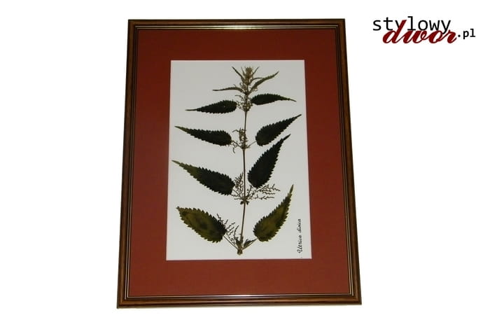 Prezentujemy pięknie oprawioną, zasuszoną roślinę z naszej kolekcji Zielnik Polski. Plansza z rośliną oprawiona została w barwiony passepartout oraz skromną, drewnianą ramę o wymiarach 42,5x32,5cm.