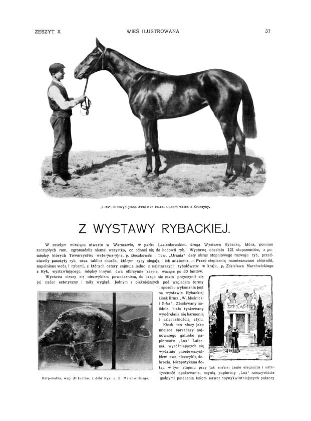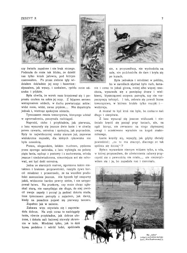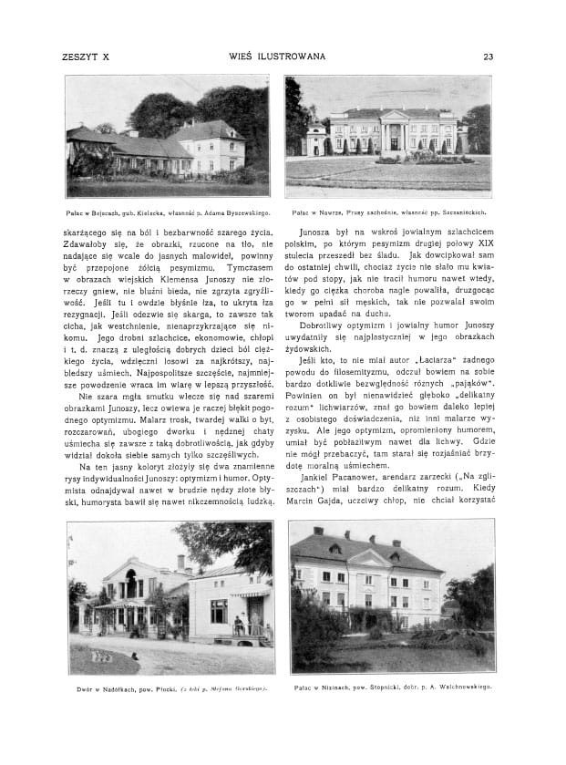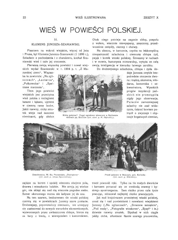 Zdjęcia: polowanie; grzybobranie; pałac w Czerwonym Dworze; pałac i kościół w Berezynie; wykopki; dwór Chwałkowice; pałac w Bejscach wł. Byszewskiego; pałac w Nawrze wł. Szczanieckich; dwór w Nadółkach; pałac w nizinach pow. Stopnicki; dwór Dołpatycze wł. Podczaskich; typy Żydów wiejskich; życie na wski, wszystko o pstrągu; hodowla koni i hodowla ryb w stawach.