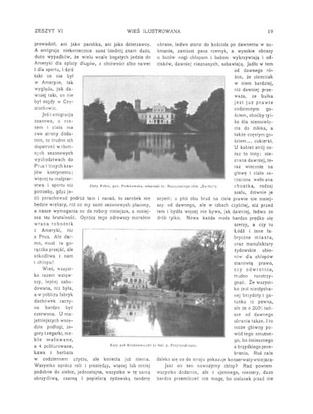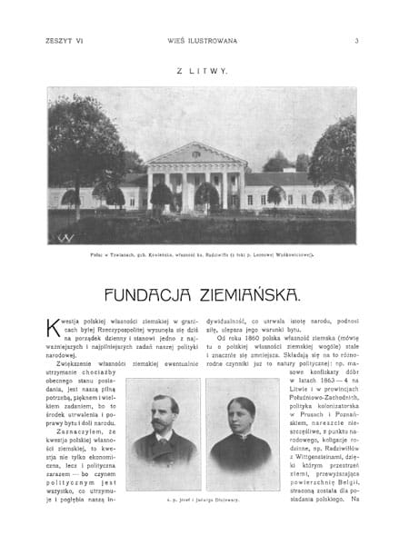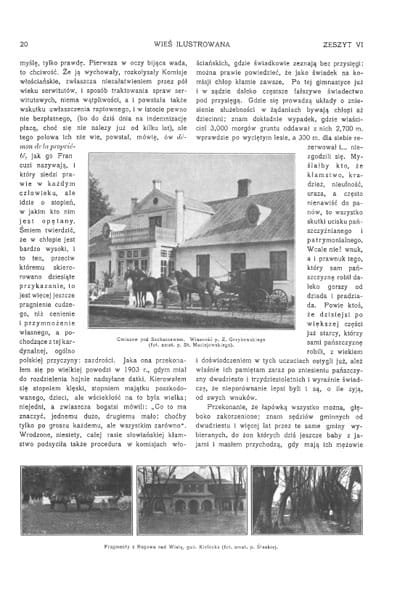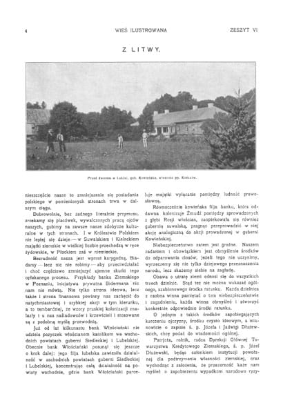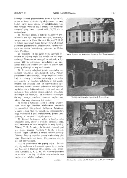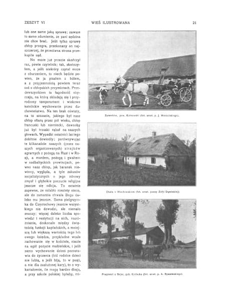 Zdjęcia: pałac w Towianach gub. Kowieńska, wł. Ks. Radziwiłła; dwór w Łukinii; pałac w Rybienku pod Wyszkowem; Wierzbie na Kujawach wł. Krzymuskiego; u brzegów Wisły; wieś Krzczonów pod Lublinem; dwór w Złotej pow. Pińczowski wł. Olszowskich; Złoty Potok gub. Piotrkowska wł. Raczyńskich; Kąty pod Krośniewicami; Cmiszew pod Sochaczewem wł. Grzybowskiego; dwór w Rogowie nad Wisłą; jazda konna, wiejskie chaty; dwór modrzewiowy w Łękach.