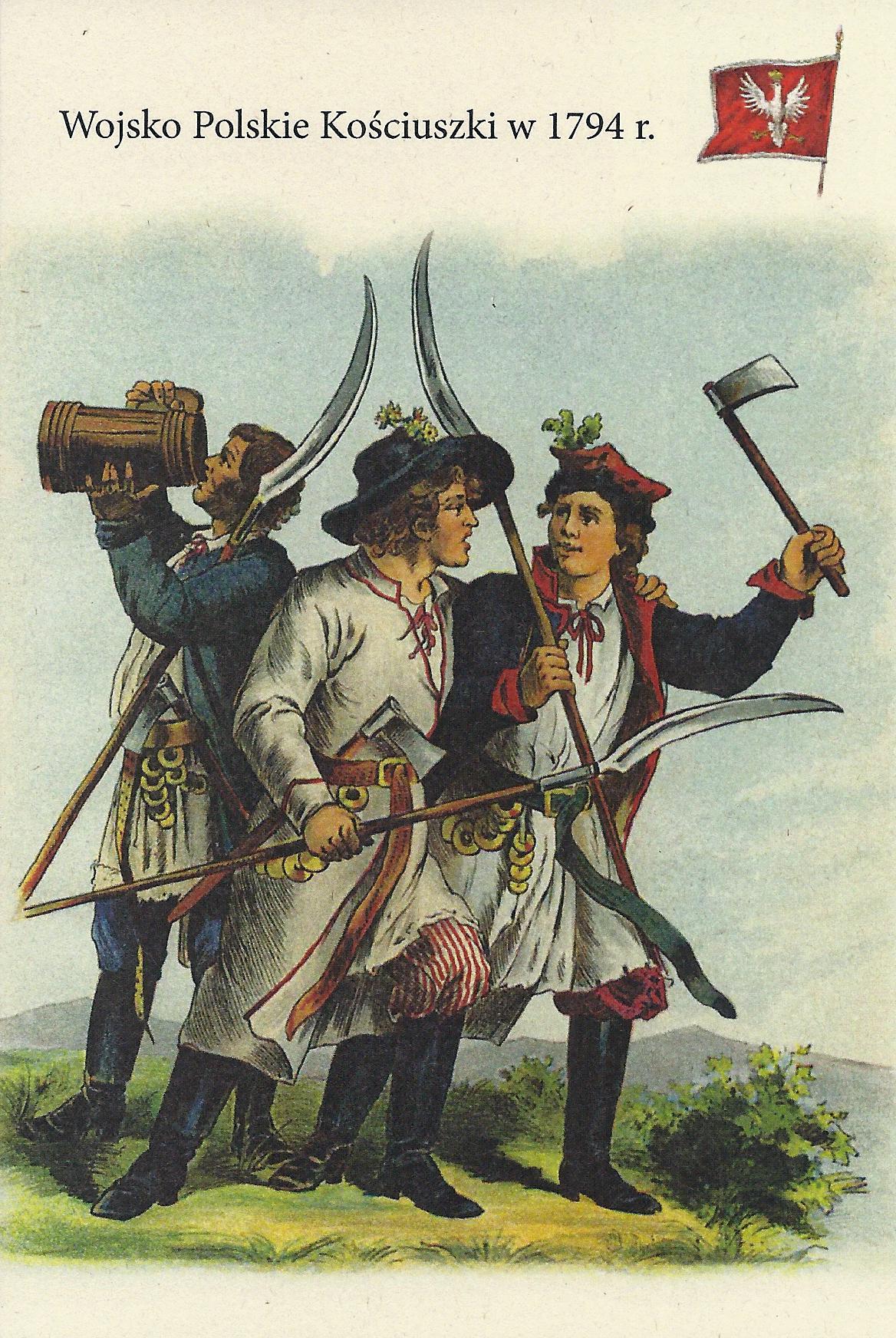 Pocztówka Włościanie z batalionu kosynierów Krakowskich rys. Michał Stachowicz format: 10x15 cm
